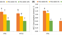 Abscisic acid (ABA) plays a critical role in coordinating the response of plants to various environmental changes23. In response to drought, plants use ABA-mediated pathways to control water loss by closing stomata and adjusting morphological and physiological traits. These traits include increased root growth, reduced stem and leaf growth, regulation of stress-response genes, and antioxidant production to detoxify reactive oxygen species23,24,25. Promoters of the ABA-response genes possess a cis-acting element (ABRE, PyACGTGG/TC) that is essential for the response to ABA26. The ABREs in ABRE-binding (AREB) proteins or ABRE-binding factors (ABFs) form a group of basic region/leucine zipper motif (bZIP) transcription factors (TFs) from Arabidopsis that are key regulators in mediating ABA-triggered plant tolerance to abiotic stresses27,28. A series of bZIP TFs specifically bind to the ABRE elements in promoters of ABA-responsive genes, thus activating their transcript expression29,30. In higher plants, the bZIP proteins form a large family of TFs that are involved in stress-related responses in addition to plant development30,31. For instance, overexpression of genes OsbZIP42 and OsbZIP72 increased the tolerance to abiotic stresses in transgenic rice32,33. Similarly, genes ZmbZIP72 and ZmbZIP4 from maize overexpressed in Arabidopsis conferred tolerance to salt and drought34,35.