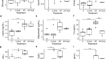 At predetermined time points, the mice were fasted for approximately 16 h and then euthanized via cervical dislocation. Next, EDTA-treated whole blood samples were collected. Plasma was separated and immediately subjected to biochemical analysis using a Hitachi 7080 biochemical analyzer (Japan). Aliquots of plasma were stored at −80 °C until use. Mouse insulin, glucagon, GLP-1, and ghrelin, ELISA kits were purchased from AndyGene Biotechnology Co. LTD (Beijing, China). These parameters were used to quantify the respective levels in the plasma in accordance with the manufacturer’s instructions. A Varioskan LUX microplate reader (Thermo Fisher, USA) was used for the assay, and a 4-parameter logistic regression was used for data analysis. Two replicates were performed for each sample. The results were then averaged.