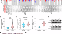 a Mutation frequency of MREs across cancers in TCGA database. The X-axis represents each cancer, and the Y-axis represents the frequency of mutations in MREs. The data were downloaded from the Xena Browser (https://xenabrowser.net/). b Mutation types, mutation frequencies and tumor mutation burden (TMB) of MREs across cancers. The X-axis represents each cancer, the Y-axis represents the different MREs and the number of samples with mutations, and the top is the TMB. c Histogram shows the frequency of SCNAs for each MRE in each cancer type. d The gene expression patterns of MREs across cancers. The X-axis represents each cancer, the Y-axis represents the different MREs, and the top represents the statistics of the number of upregulated and downregulated MREs in different types of tumors. e The Spearman’s correlation between somatic copy number alterations and the expression of MREs. MPIs were validated in multiple datasets: GSE2450 (f), GSE252007 (g), GSE40355 (h), GSE3167 (i), and TCGA-BLCA (j). Survival analysis of BLCA patients with high MPI or low MPI from the TCGA dataset (k) and GSE13507 dataset (l). Statistical significance was ascertained by two-tailed unpaired Student’s t-tests (g–j) and the log-rank test of Kaplan–Meier analysis (k and l). The data are shown as the means ± SD. BLCA bladder urothelial carcinoma, KICH kidney chromophobe, KIRC kidney renal clear cell carcinoma, KIRP kidney renal papillary cell carcinoma, PRAD prostate adenocarcinoma.