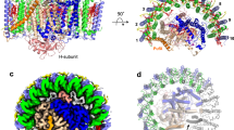 In recent years, many structures of LH1–RC and LH2 complexes have been solved using single-particle cryo-electron microscopy (cryo-EM), and essential structural principles have emerged that have significantly advanced our understanding of these complexes from a functional standpoint. Complexes from different species exhibit significant diversity in both composition and topology. All core complexes consist of LH1 surrounding the RC to form monomeric or dimeric open or closed structures, whereas all LH2 complexes are closed circular structures that vary considerably in their specific details. Most LH1–RC complexes exist as monomers with the RC surrounded by a closed LH1 ring composed of 16–17 pairs of αβ-polypeptides6,7,8,9,10,11,12,13 or an open ring composed of 10–15 pairs of αβ-polypeptides plus auxiliary small transmembrane polypeptides11,14,15,16,17,18,19,20. Dimeric LH1–RC core structures are present in some Rhodobacter species21,22 and the alkaliphilic purple bacterium Rhodobaca (Rca.) bogoriensis23 and are characterized by continuous S-shaped LH1 arrays surrounding two RCs. Additionally, the LH1–RC core complex of Gemmatimonas (G.) phototrophica consists of two concentric rings surrounding the reaction center including an inner ring of 16 subunits and an outer ring of 24 subunits24.