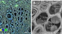 SCLSM analysis of the stained sections was performed at 25 °C via a spectral confocal laser scanning microscope system equipped with HC PL APO 10×, 20×, 40× lenses and Las X 4.4.0 software (Stellaris 5 DMi8, Leica Microsystems, Germany). The fluorescence was excited via the 405 nm line of a blue solid laser, and the 520 nm and 555 nm lines of a pulsed white laser, in all cases with laser power set to 2.0-10.0%. The emission spectra in the ranges of 410-560 nm, 525–675 nm, and 560–610 nm with 5 nm bandwidths were recorded for the detection of the cell wall stained with Calcofluor White stain, cis-polyisoprene stained with Nile Red and the secondary antibody stained with Alexa Fluor 555, respectively. Fresh latex of P. sepium tissue and the cis-1,4-polyisoprene standard from H. brasiliensis stained with Nile Red were used as reference samples. The ROIs fluorescence spectra from each of the 30 locations in the cell walls, cis-polyisoprenes and lipid bodies were measured and averaged from three successive scans to improve the signal-to-noise ratio. Image processing, including spectral unmixing, was performed via Las X 4.4.0 software.