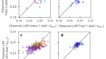 Maize hybrids were evaluated as described in ref. 48 within a nitrogen-responsive field site at the Crop Sciences Research and Education Center in Urbana, Illinois. The soil type at this field is a Drummer silty clay loam, pH 6.5, which provided 60–75 kg N ha−1 in each year of the experiment based on both soil testing and measures of plant N recovery from unfertilized plots. Hybrids were grown in a split-plot design, where the same hybrid was grown in paired plots (2 rows 5.3 m long, 76 cm row spacing) receiving either no fertilizer or N fertilizer applied at a rate of 200 kg N ha−1, as granular ammonium sulfate banded at the soil surface when the plants reached the V3 (3 leaf collars) growth stage. All hybrids were planted at a density of 86,000 plants ha−1, with three replicates of each N treatment. Trials were planted on 7 May (2021), 12 May (2022) and 4 May (2023) using a GPS-guided vacuum planter (SeedPro, Almaco, Nevada, IA, USA).