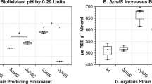 We have already improved bioleaching of REEs by G. oxydans by first identifying genes involved in acid production with high-throughput screening16, and then engineering their regulation15. We increased REE-bioleaching from the REE-containing mineral allanite by up to 73% by up-regulating the membrane-bound glucose dehydrogenase, mgdh, and knocking out the phosphate signaling and transport system pstS15.