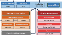 The integrity of the genome sequence was primarily evaluated using Benchmarking Universal Single-Copy Orthologs (BUSCO) and the CEGMA. BUSCO v4.0.564 was used to compare the genome with single-copy orthologs in the OrthoDB database to determine the completeness of the genome. Augustus v3.3.165 and HMMER v366 software were used for gene structure prediction and alignment to evaluate their integrity. CEGMA v267 aligned the core genes in the assembled genome with a known set of 248 conserved protein families to assess the accuracy and completeness of the assembled genome. BWA v0.7.1268, SAMtools v1.469, and BCFtools v1.8.070 were used to detect single-base variations. As for the genomic contamination assessment, Minimap271 was used to align clean reads from the Nanopore sequencing data to the assembled genome. SAMtools v1.4 calculates the sequencing depth at each genomic position based on the alignment results. Finally, a GC-depth scatter plot is generated with average GC content on the x-axis and average sequencing depth on the y-axis. Based on the principle that GC content differs across species, this analysis determines whether the genome contains foreign contamination. If no distinct GC separation is observed, it indicates the absence of exogenous contamination in the genome. If clear GC separation is detected, contaminants will be filtered in later stages using alignment results against the genome and the NT database.