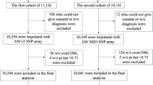 SNP genotyping was performed using Infinium OmniExpress-24+ BeadChip or Human OmniExpress-24+ BeadChip (Illumina, Inc., San Diego, CA, USA) in the DLS laboratory. Before Genotype imputation, the quality control was performed on the genotyped 684,436 autosomal SNPs with the following exclusion criteria: with a (i) minor allele frequency < 0.01, (ii) Hardy-Weinberg equilibrium P < 10−6, and (iii) missing call rate > 0.01. The initial phase of haplotype phasing was conducted on the entire cohort of 55,551 individuals utilizing Eagle (v2.4.1)58, with the reference panels of the 1000 Genomes phase 3 version 5 (1KGP-JPT; available at https://mathgen.stats.ox.ac.uk/impute/1000GP_Phase3.html). Genotype imputation was performed using Minimac3. Quality control procedures for the genotype data included the exclusion of SNPs meeting the following criteria: with a (i) minor allele frequency < 0.01, (ii) Hardy-Weinberg equilibrium P < 10−6, (iii) call rate <95%, and (iv) r2 < 0.7. All genetic variants initially identified were subjected to a comprehensive re-annotation procedure using “bcftools annotate”. Linkage disequilibrium (LD) pruning was conducted after quality control, with an option “-indep-pairwise 50 5 0.2” using PLINK (v1.9)57. Following the application of eligibility criteria to the study participants, the dataset consisted of 395,665 pruned-in variants from 43,726 individuals. Genome construction information was based on the GRCh37/hg19 reference.