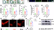 A previous study indicated that activating the MAPK signaling pathway can induce EGR1-mediated Per2 expression44. DEGs were found to be enriched in the MAPK signaling pathway during microglial ferroptosis in our study (Fig. 2a). Thus, to explore the mechanism by which Per2 is upregulated during microglial ferroptosis, we first assessed the phosphorylation status of P38 at different time points after ferroptosis induction. P38 phosphorylation was most significantly increased at 1 h after treatment with a ferroptosis inducer (Fig. 2d–e and Supplementary Fig. 3c–e), which indicated that the MAPK pathway plays a role in the regulation of microglial ferroptosis. Furthermore, a significant increase in Per2 protein expression was observed 8 h after treatment with the ferroptosis inducers (Fig. 2d, f, and Supplementary Fig. 3c–e). To further confirm the relationship between Per2 and the MAPK signaling pathway during microglial ferroptosis, primary microglia were pre-treated with PD169316, a selective P38 MAPK inhibitor45, which effectively reduced the level of p-P38 MAPK at 1 h (Fig. 2g, h, and Supplementary Fig. 3f) and subsequently inhibited the protein expression of Per2 at 8 h (Fig. 2i, j, and Supplementary Fig. 3g) after treatment with the ferroptosis inducers. Together, these results indicate the potential role of Per2, a pivotal component of the circadian gene network, in the regulation of microglial ferroptosis.