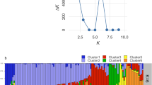 Filtered SNPs were subjected to linkage disequilibrium (LD)-based filtering for population structure analysis. The selected SNP-containing VCF file was converted to PHY format using the vcf2phylip.py script. Phylogenetic tree construction was performed using PHYLIP (v3.697)52, with the parameters set as follows: seqboot.bar (R 100 Y 9), dnadist.par (T 2 M D 100 2 Y), neighbor.par (M 100 9 Y), and consense.par (Y). The resulting phylogenetic tree was visually refined using Evolview53. For principal component analysis (PCA), the VCF file was converted to PLINK format using PLINK (v1.9)42, with the parameter --allow-extra-chr. Population structure analysis was conducted using Admixture54. Since the number of genetic clusters was unknown, the range of K values was set from 2 to n, allowing the software to infer population subdivisions based on the specified K values. Admixture calculated the maximum likelihood estimate for each K value, with higher likelihood values indicating a better fit to the actual population structure. In this study, K values were set from 2 to 5, and STRUCTURE calculations were performed for each K value to infer the genetic structure of the population. We calculated within-population genetic diversity (π) and between-population divergence. Pairwise fixation indices (Fst) were computed using VCFtools (v0.1.16)55 to gauge the level of genetic differentiation between each pair of populations.