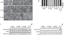 Cells were washed twice with ice-cold PBS, and proteins were extracted using an ice-cold lysis buffer containing 10 mM Tris-HCl (pH 7.5), 50 mM KCl, 2 mM MgCl2, 1% Triton X-100, 3 μg/ml aprotinin, 1 μg/ml pepstatin, 1 μg/ml leupeptin, 1 mM dithiothreitol, 0.1 mM Na3VO4, and 1 mM phenylmethylsulfonyl fluoride. The extracts were incubated on ice for 15 minutes, then centrifuged at 10,000 × g for 15 minutes at 4 °C. Supernatants were stored at −80 °C. Protein concentrations were measured using the Bradford assay (Bio-Rad). To evaluate the expression of various proteins, 50 µg of protein extracts from the same set of samples were loaded in parallel onto two identical sodium dodecyl sulfate (SDS)-polyacrylamide gels. After transferring the proteins to Immobilon-P membranes (Millipore), the blots were cut into smaller sections based on the molecular weights of the target proteins. One section was probed for the phosphorylated protein of interest, while the corresponding section was probed for the total protein. This approach bypassed the limitations caused by increased background signal following the stripping of phospho-specific antibodies, which interfered with subsequent reprobing using total antibodies. Protein extract loading was normalized to ACTIN or TUBULIN levels. The antibodies used for immunoblotting are listed in Supplementary Table S2. Protein visualization was performed using enhanced chemiluminescence (ECL) according to the manufacturer’s instructions (Amersham Biosciences). Band quantification within the linear range of exposure was carried out using ImageJ 1.51e software (NIH, Maryland, USA).