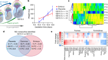 Using partial least squares-discriminant analysis (PLS-DA) based on identified metabolites, we were able to separate the different organs and observe independent metabolic patterns during late gestation. The placenta and brain were found to be discrete from other organs (Fig. 1b). Our findings showed that developmental time did not affect the overall metabolic characteristic of each organ, but rather impacted on the metabolic specialization within each organ (Fig. 1b, Supplementary Fig. 1c). This suggests that although various organs in late gestation were still developing, they had already undergone metabolic specialization. To further explore the pattern of each organ over development time, the abundance of identified metabolites was measured. The results showed that the most metabolites in the heart and stomach were relatively high, while the overall abundance of metabolites in the placenta and brain were low, declaring the significant metabolic difference among the organs, with the heart and stomach being metabolically active organs during late gestation (Fig. 1c). Moreover, the identified metabolites from different organs were mainly enriched in alanine, aspartate and glutamate metabolism, purine metabolism, TCA cycle, pantothenate and CoA biosynthesis and others (Supplementary Fig. 1d), suggesting the important role of these metabolic pathways in different organs during late gestation.