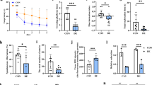 Previous studies have shown that a single dose of 200 mg/kg STZ induces T1DM27 and is accompanied by reduced insulin levels, hyperglycemia, and elevated blood levels of β-OHB in mice12,28. We injected STZ into mice to construct a T1DM mouse model in the present study. Most of the β-OHB present in the brain is produced by the liver and enters the brain via the bloodstream17. We collected liver tissue, blood plasma and hippocampal tissue from T1DM mice to measure the levels of β-OHB. As expected, 4 days after STZ injection, the blood glucose levels were significantly greater in the STZ-treated mice than in the control mice, indicating that the T1DM mouse model was successfully established (Fig. 1A; t(12) = 21.14, p < 0.0001). Furthermore, the levels of β-OHB were significantly increased in the liver, blood and hippocampus of STZ-treated mice 4 days after injection (Fig. 1B–D; liver β-OHB: t(10) = 7.449, p < 0.0001; blood β-OHB: t(10) = 46.79, p < 0.0001; hippocampal β-OHB: t(10) = 9.128, p < 0.0001). To explore whether hippocampal β-OHB production increased in a time-dependent manner after STZ injection, we detected the levels of β-OHB in the hippocampus at 4, 7, 14 and 28 days after STZ injection and found that it was increased at 14 and 28 days (Fig. 1E; F(3, 20) = 36.36, p < 0.0001).