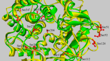 To study the structural features of mutated forms with higher Tm values, we examined four variant models, all showing improved thermostability. In each of these models, we observed the presence of key residues that are related to structural stability. In variant 76_5, the L246F and V35I mutations are located in the core packing, probably resulting in a more stable assembly among core residues. The S192K mutation formed a new hydrogen bond, whereas the G348P and S305P mutations likely reduced flexibility in the loop. The V300K and R297W mutations introduced π–π and cation–π interactions, respectively, while the V429R and M439K mutations transformed hydrophobic surface residues into ionizable ones, potentially improving solubility and interaction with their aqueous surroundings. Variant 76_4 showed a similar pattern, including the L101F mutation that promoted the formation of π–π stackings, increased loop rigidity by the G348P and S305P mutations, the generation of a new hydrogen bond by the S192K mutation, and the establishment of new π-π and cation-π interactions via the V300K and R297W mutations, respectively. Variants 76_6 and 76_7 exhibited mutations that also affected core packing, hydrogen bonding, and π-π stacking, collectively impacting their thermal stability. Taken together, the design method that combined stabilizing mutation scanning with a Rosetta-guided energy calculation introduced multiple mutations simultaneously for enhanced stability (Fig. 3c).