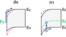 In the high binding-energy domain two distinct populations, represented by different decay associated spectra and different decay functions, can be expected. In agreement with this assumption, DAS1 with a peak at 2.5 eV (Fig. 2c, yellow line) and the broader DAS2 peaking at 2 eV (purple line) can be identified, together with two corresponding decay functions. The transient population N1 rises quickly to a maximum at ~250 fs, followed by a rapid decay with a characteristic time of τ1 = (380 ± 70) fs (Fig. 2b, yellow line). Note that the integrated 2.0–3.0 eV signal (yellow circles) deviates from the N1 transient (yellow line) because there is a significant contribution from the slower N2 (DAS2) signal in this energy interval. N2 features a delayed onset with respect to N1 with a rise time of \({\tau }_{2}^{{{{\rm{rise}}}}}=(450\pm 180)\) fs leading to a maximum at 1.2 ps and also a slower decay time constant of τ2 = (4.0 ± 0.9) ps (Fig. 2b, purple line).