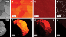 Among the various dopants investigated over the past decades (Cr, Mg, Nb, Ni, Ti, Al, Si, Mn, V, Fe, and their oxides8,9,10), Cr and Cr2O3 have shown particular benefits. The addition of Cr results in a significant increase in the average grain size, reaching over 100 μm in UO2-Cr compared to 10–20 μm in undoped UO26,10,11. This grain size enhancement leads to improved plasticity of the fuel12,13, which helps moderate the pellet-cladding interaction by allowing the pellet to deform more easily, thus reducing stress on the cladding. Additionally, for Cr concentrations near the solubility limit, improved fission gas retention has been observed under power ramping conditions12. Consequently, UO2-Cr fuels can achieve higher burnup rates5.