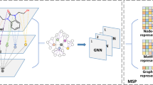 Starting from the SMILES string of a molecule, we convert it into an atom-level molecular graph Gatom = {Vatom, Eatom} using the RDKit tool36, where \({V}_{{{\rm{atom}}}}=\{{v}_{p}^{{{\rm{atom}}}}\}\) represents the set of nodes, and \({E}_{{{\rm{atom}}}}=\{({v}_{p}^{{{\rm{atom}}}},{v}_{q}^{{{\rm{atom}}}})\}\) represents the set of edges. Each node \({v}_{p}^{{{\rm{atom}}}}\) corresponds to an atom and is initialized with 11 atomic features, including atomic number, chirality, and aromaticity (Table S11). Likewise, each edge \(({v}_{p}^{{{\rm{atom}}}},{v}_{q}^{{{\rm{atom}}}})\) represents a bond and includes features such as bond type, stereochemistry, and conjugation (Table S12).