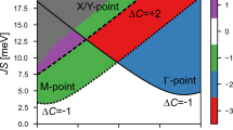 where \({\cal G}_e(\omega ,{\mathbf{p}})\) and \({\cal G}_h(\omega , - {\mathbf{p}})\) are the single-particle Green’s functions of electrons and holes, and γ represents the superconducting pairing matrix: γ ∈ {sy, τxsy, τysx, τzsy, τy, τysz}. The linearized gap function is derived from \(\partial {\cal L}_2/\partial {\mathrm{\Delta }}_i = 0\) and can be used to construct the phase diagram. More technical details of constructing the phase diagram and the realistic parameters of the microscopic model24,28,29,30,31,32 are discussed in Supplementary Note 3. At zero magnetic field Bx = 0, the Hamiltonian (1) has D3d group symmetry, which possesses three one- dimensional (1D) irreducible representations: A1g, A1u, and A2u; and one 2D irreducible representation: Eu. Consequently, the momentum-independent SCing pairing forms can be classified26. According to the linearized gap equation (See Supplementary Note 2), the stable SCing phases are shown as a function of interaction parameters U and V in Fig. 1c. It is found that intra-layer A1g pairing \(\hat c_{t \uparrow }\hat c_{t \downarrow } + \hat c_{b \uparrow }\hat c_{b \downarrow }\) is favored for a strong attractive U while inter-layer A1u pairing \(\hat c_{t \uparrow }\hat c_{b \downarrow } - \hat c_{b \uparrow }\hat c_{t \downarrow }\) (intra-layer A2u pairing \(\hat c_{t \uparrow }\hat c_{t \downarrow } - \hat c_{b \uparrow }\hat c_{b \downarrow }\)) can appear for a strong attractive (repulsive) V. More precisely, the phase boundary between A1g and A1u is, \(\frac{U}{V} = 1 - \frac{{2m_{\mathrm{F}}^2}}{{\mu ^2}}\); and the boundary between A1g and A2u is U = −V. However, in the realistic materials, we expect the intra-layer interaction U dominates over the inter-layer interaction V and thus gives rise to superconductivity described by A1g pairing in the phase diagram.