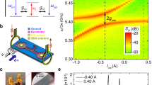 The ferrimagnetic resonance field Hres of YIG shows an approximately linear dependence on the angular frequency ω (see the inset of Fig. 2), which is expected in high magnetic fields H0 ≫ M0. From the fits to these data we estimate the value for the saturation magnetization μ0M0(T = 200K) = 0.2 ± 0.03 T, in reasonable agreement with the literature values43 and with the static data, \({\mu }_{0}{M}_{0}^{\,\text{VSM}\,}=0.198\) T, measured on the same sample using vibrating-sample magnetometry.