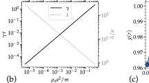 The turbulence inertial range is characterized by two lengthscales, the Taylor microscale76, and the integral scale79. The Taylor microscale falls in between the large-scale eddies and the small-scale eddies. The integral scale LI can be extracted from the velocity autocorrelation function in Fig. 4c. It gives LI ≈ 100 for particle Reynolds number Re = 0.1. The corresponding r.m.s. (root mean square) velocity urms can be determined from Fig. 4b and is about 5, resulting in the integral scale Reynolds number of the order of 50. The Taylor microscale λ is several times smaller, and is determined from the fluctuations of velocity and velocity gradients, \({({\partial }_{{\bf{r}}}\langle {\bf{u}}\rangle )}^{2}={{\bf{u}}}_{{\rm{rms}}}^{2}/{\lambda }^{2}\). It roughly can be estimated from the velocity gradients (vorticity) autocorrelation function, Fig. 4d, which gives λ ≈ 15.