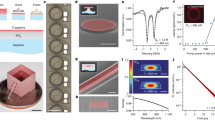 To obtain spectral data, the output of the silicon chip is sent to an optical spectrum analyzer after an aspheric lens for beam collimation. The optical spectrum spectral resolution was 4.0 GHz (equivalent to 0.15 nm in wavelength), limited by the optical spectrum analyzer. We also co-align a tunable OPO with a linewidth of approximately 100 kHz through the chip and send its output to a photodetector connected to an oscilloscope for characterizing the linewidth of the microresonator. The cavity length of the ICL is 4 mm and the group index is 3.85 (values from Thorlabs). This yields the FSR of 19.48 GHz \(\left( {{{{{{\rm{FSR}}}}}} = \frac{c}{{n_gL}} = 19.48\,{{{{{\rm{GHz}}}}}}} \right)\) which is 60 times larger than the resonator linewidth of 323 MHz. For all experiments we measure the output from the mirroring through-port. To measure the linewidth of the locked-state laser, we couple the output beam to a scanning Fabry–Perot interferometer (1.5 GHz FSR, 9 MHz resolution) controlled by a piezo-controller.