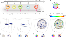 where \({S}_{i}\,=\,\{{{{{\mathrm{0,1,2}}}}},\ldots ,M\,-\,1\}\) is an M-component spin on the ith node of the model, where \(i\,=\,\left\{{{{{\mathrm{1,2,3}}}}},\ldots ,N\right\},\) and \(\delta \left(a,b\right)\) is the Kronecker delta function. Since multivalued spins naturally express integers, various integer optimization problems can be straightforwardly mapped onto ground-state search problems based on this model19. For example, graph coloring can be described as a Potts model with a smaller Hilbert space than that of the standard Ising model21. In the standard Ising-model mapping, M colors in each node are represented as M Ising spins21; thus, the size of its Hilbert space is 2NM, which is larger than that of the original M-color problem, i.e., \({M}^{N}(={2}^{{N{{\log}}}_{2}M}).\) The Ising Hamiltonian has constraint terms to reduce the size of the enlarged space to that of the original problem, while the Potts model without the constraint Hamiltonian has the same size as that of the original. Thus, the Potts model mapping allows us to avoid the embedding overhead (see Supplementary Note 1). On the other hand, there are several challenges in realizing a physical Potts solver, namely the implementations of multivalued spins and interactions described by a Kronecker delta within physical systems. Recently, it has been proposed that physical systems based on a lattice of nonequilibrium Bose-Einstein condensates17 and a network of three-photon down-conversion oscillators18 can be used to solve specific Potts problems.