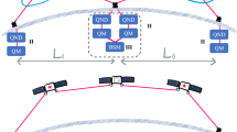 While the asymptotic key rates one would obtain with static satellites at various points along the orbit (as shown in Fig. 5b) are useful to get a sense of the performance of different setups, in order to estimate the actually obtainable rates one needs to analyse the effective quantum bit error rate of the raw bit strings collected at the ground stations. For each of the data points, we calculate the quantum bit error rate and average it weighted by the raw bit rate. We perform this for both scenarios with three satellites and also compare them to protocols with one satellite at higher orbits, as an alternative way to make key distribution at this distance possible. The obtainable raw bits per pass as well as the effective key rate (taking into account the time waiting for the satellites to come in range again) are summarized for a selection of satellite configurations in Table 2. For details of the calculations and additional results see Supplementary Note 3. It is worth noting that for the best working configurations around 104–106 raw bits per pass of the satellites can be expected, which would be sensible block sizes for finite key distribution protocols12 without having to accumulate bits over multiple passes.