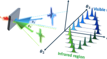 where ∗ denotes convolution and A is a normalization parameter. The numerically blurred coincidences are projected into sum coordinates, and again we fit a symmetric 2D Gaussian, obtaining the expected output anti-correlation width \({\sigma }_{+}^{-1}=(69.0\pm 1.2)\;\upmu\)m.