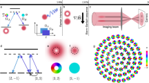 The Airy and superoscillatory profiles are collected on a CCD camera through a ×75 imaging system (see Fig. 2a). The images are fitted with an Airy disk pattern, to extract the Abbe radius. For a diffraction-limited spot, the Abbe radius is \({r}_{A}=\lambda /2{{{{{\rm{NA}}}}}}=1.15\) \(\lambda =1.24\,\upmu {{{{{\rm{m}}}}}}\), with λ = 1064 nm. For the Airy profile, we find \(1.34\,\upmu {{{{{\rm{m}}}}}}=1.09{r}_{A}\), which is very close to the diffraction limit. For the superoscillatory field, we get a subwavelength spot size of \(0.85\,\upmu {{{{{\rm{m}}}}}}=0.69\) rA, well below the Abbe’s limit. See Supplementary Note 1 for more details.