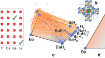 We are now left with the question: what is the stability boundary of \(Fm\bar{3}m\)-BaSiH8? In our previous work on BaSiH819, we challenged the common practice of assuming the range of metastability of high-pressure hydride phases to coincide with the range of (an)harmonic dynamical stability, which systematically underestimates the stabilization pressures needed to synthesize these materials in reality43,44,45,46. Dynamical stability is only a prerequisite for thermodynamic metastability, which is characterized by the existence of a distinctive enthalpy barrier that protects a metastable phase from decomposition into other phases (kinetic stability). In our previous work19, we calculated the enthalpy transition path to the thermodynamic groundstate at different pressures (corresponding to a decomposition of the \(Fm\bar{3}m\) BaSiH8 phase into BaSiH6 + H2 in molecular form), and could estimate the barrier height from the intermediate structures (cf. Supplementary Fig. 16, where we also report the minor influence of ZPE on the determined barrier heights). In combination with the calculated convex hulls for the B-S-H system, we can argue with confidence that the \(Fm\bar{3}m\) BaSiH8 phase could be synthesized above 100 GPa, and retained down to ~30 GPa, where a distinctive enthalpy barrier still exists. At lower pressures, metastable \(Fm\bar{3}m\) BaSiH8 will decompose, even though (anharmonic) lattice dynamics calculations predict it to be stable. Hence, kinetic stability poses a stricter bound for synthesizability than dynamical stability.