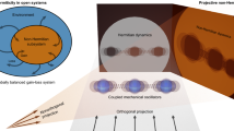 Since the seminal work of Bender and co-workers1,2, the field of non-Hermitian Hamiltonians with parity-time (\({{{{{{{\mathcal{PT}}}}}}}}\)) symmetry has diversified and matured over the past two decades3,4,5,6. \({{{{{{{\mathcal{PT}}}}}}}}\)-symmetric Hamiltonians represent open classical systems with balanced gain and loss7, and have been experimentally realized in diverse platforms comprising optics8,9,10,11,12, electrical circuits13,14,15, mechanical oscillators16, acoustics17, and viscous fluids18. Post selection over no-quantum-jump trajectories has further enabled their realizations in minimal quantum systems such as an NV center19, a superconducting qubit20, ultracold atoms21, or correlated photons22. Concurrently, open systems with anti-parity-time (\({{{{{{{\mathcal{APT}}}}}}}}\)) symmetry have emerged. A system has \({{{{{{{\mathcal{APT}}}}}}}}\)-symmetry if its Hamiltonian Hanticommutes or its Liouvillian L ≡ −iH commutes with the \({{{{{{{\mathcal{PT}}}}}}}}\) operator. As a result, the eigenvalues \(({\lambda }_{m},{\lambda }_{m}^{* })\) of the Liouvillian L are purely real or complex conjugates23. Thus, while the symmetry-breaking transition in a \({{{{{{{\mathcal{PT}}}}}}}}\)-symmetric system is marked by the emergence of amplifying and decaying eigenmode pairs, modes of an \({{{{{{{\mathcal{APT}}}}}}}}\)-symmetric system amplify or decay independent of each other. \({{{{{{{\mathcal{APT}}}}}}}}\)-symmetric systems have been realized in atomic vapor and cold atoms24,25, active electrical circuits26, disks with thermal gradients27, and diverse optical setups28,29,30,31.