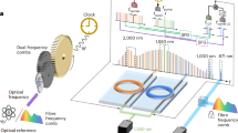 The frequency of the comb line is determined by fμ = fp + μfrep, which means that the stabilization of the EO comb involves the stabilizing frequency of the pump laser and the repetition rate. We have employed a PDH frequency stabilization technique to lock the frequency of the pump laser (Toptica CTL 1550) to the D2 transition of 87Rb (fatom = 384.2281152033(77) THz)50. The Rb cell used is a pure cell, and its temperature is set to room temperature. The frequency of the pump laser is doubled through the PPLN waveguide, and the temperature of the PPLN is controlled using a proportion-integral-derivative (PID) servo. The doubled pump laser frequency is accurately referenced to the atomic transition by providing feedback to control the current and PZT voltage of the pump laser. Then, we can get the fp = fatom/2 = 192.1140576017(39) THz.