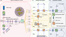 For the detection system, the two SNSPDs (Single Quantum Eos) had a timing resolution of 19 ps and 18 ps, respectively, with the correlation electronics (PicoQuant PicoHarp 300) having a timing resolution of 10 ps. Each exhibits a Gaussian distribution resulting in an overall timing resolution of \(\sqrt{1{9}^{2}+1{8}^{2}+2* 1{0}^{2}}\, \approx \, 30\) ps. The overall detection system timing resolution when using the SPADs was 488 ± 1 ps, see Supplementary Note 6 for the calculation of this value. The two SPADs had dark count rates of 34 ± 18 and 306 ± 51, respectively.