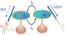 the symbol 〈 f ∣ g〉 ≡ ∫ f (x)g(x)dx. Note that D = (Γ+ + Γ−)/2, \({\alpha }^{{\prime} }=({\Gamma }_{+}-{\Gamma }_{-})/2\), and for small α, κ± is proportional to α. Normalising \({u}_{i}\to {u}_{i}/\sqrt{a}\), \(\eta \to \eta \sqrt{a}\), and \({\kappa }_{\pm }\to {\kappa }_{\pm }/\sqrt{a}\), we obtain Eq. (3).