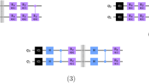 Starting from our masked state \({\left\vert \Phi \right\rangle }_{A123}\), the second and third steps in our complete QIM scheme can be iterated multiple times to add more qubits involved. The involved CNOT gates are operated on the added qubits and the existing qubits, where the added qubits are the target qubits, and the control qubits can be any qubits of the existing sharing states. To illustrate, let us consider an example of a 6-qubit QSS state. On top of the masked state \({\left\vert \Phi \right\rangle }_{A123}\), we add two qubits \({2}^{{\prime} }\) and \({3}^{{\prime} }\) prepared in \(\left\vert 0\right\rangle\) and do the gate operation \({{{{\mathcal{C}}}}}_{2{2}^{{\prime} }}\) and \({{{{\mathcal{C}}}}}_{3{3}^{{\prime} }}\), respectively. Then the 6-qubit QSS state can be written as