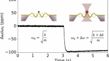Figure 4b shows a comparison of an experimental to the theoretical frequency stability of the best-performing membrane resonator. The measured Allan deviations closely follow the modelled values dominated by additive phase noise, that is, thermomechanical and detection noise. For longer integration times, the frequency stability would approach the ultimate limit given by temperature fluctuation frequency noise. For this specific membrane the thermal time constant is τth = 22.3 ms.