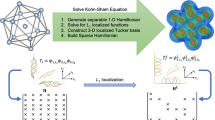 A crucial point of the LBO procedure is the knowledge of the original state \(\left\vert \psi \right\rangle\), generally the ground state of the system, that is not known prior. This issue can be overcome in several ways: by performing exact diagonalization of the system’s Hamiltonian with local dimension d for small lattice sizes, to determine \(\left\vert \psi \right\rangle\), and then truncating the basis from d to \({d}^{{\prime} }\) for increasing values of the cutoff \({d}^{{\prime} }\). From this procedure, we can obtain an optimized local basis, ensuring a controlled approximation of the original ground state. This optimized basis can then be exploited in optimization algorithms for simulating larger lattice sizes, such as DMRG. Another strategy directly incorporates the LBO procedure in the tensor network ansatz, as shown Fig. 5b: by inserting an additional tensor on each physical leg of the MPS, the large local basis with dimension d is transformed into an effective basis with a smaller dimension \({d}^{{\prime} }\). In this way, the MPS tensors only see the effective basis in the optimization procedures, with a significant reduction of the computational costs described in subsection “TNs Overview". This method has been used for both static DMRG and time evolution algorithms, such as TEBD, for the study of one-dimensional quantum impurity models and correlated electron-phonon systems166,167,170.