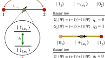 Another possible strategy would be to integrate out the matter degrees of freedom by making use of Gauss’ law \({G}_{i}\vert \psi \rangle =+\vert \psi \rangle \,\forall i\), with the generators in Eq. (3). In the physical subspace, this would lead to a spin-1 model, in a similar spirit to the spin-1/2 model that arises in the physical subspace of the \({{\mathbb{Z}}}_{2}\) chain61,62, with non-local terms that follow from the mapping of the particle density onto domain-wall operators \({n}_{i}\to (1-{P}_{{i}_{\ell }-1}^{x}{P}_{{i}_{\ell }}^{x})/2\), which count the number of magnetic kinks connecting two neighbouring ferromagnetic domains – see Supplementary Note 1. In this case, a fine-tuning of a chemical potential term \(-\mu (1-{P}_{{i}_{\ell }-1}^{x}{P}_{{i}_{\ell }}^{x})/2\) would be needed to fix the total number of particles in the system.