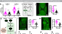 No statistical methods were used to predetermine sample sizes, but our sample sizes are similar to those reported in previous publications9,16. All the experiments and data analysis were performed in triplicate (3 animals per group). No animals or data points were excluded from the analysis. All the data are presented as mean ± s.d., unless indicated otherwise. The average fractional contribution values of identified clusters were used for statistical analysis. AUC was used for comparison of the changes following timecourse of isotope tracer incubation up to 2 hours between different groups. Data normality and equal variances were tested using the Shapiro–Wilk test. Differences between groups were assessed by paired two-tailed Student’s t-test, two-tailed Student’s t-test, when not normally distributed, or by two-tailed F-test. P < 0.05 was considered statistically significant.