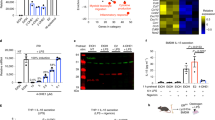 The relative time courses of the changes in mitochondrial superoxide, Δψm, succinate and itaconate are shown in Extended Data Fig. 8a. These changes occurred in tandem with cytokine production (Extended Data Fig. 8b,c), which is strictly regulated by auto-regulation through feedback loops and regulation by mitochondria-derived signals33. The pro-inflammatory cytokine TNF was rapidly produced within 3 h of TLR4 activation, while pro-interleukin (IL)-1β and IL-6 peaked at 6 h and 9 h, respectively (Extended Data Fig. 8b,c). These pro-inflammatory cytokines are negatively regulated by IL-10, which was produced within 3 h of LPS stimulation (Extended Data Fig. 8b), and acts as an autocrine signal via the IL-10 receptor (CD210; IL-10R)34,35,36.