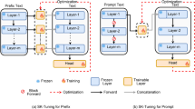 Instead of injecting neural modules to the transformer model, prompt-based methods wrap the original input with additional context. As a strategy to stimulate PLMs by mimicking pre-trained objectives in the downstream tasks, prompt-based learning has achieved promising performance in various NLP tasks36,37, especially in low-data settings. The introduction of the technique and implementations of prompt-based learning have already been comprehensively presented in other literature38,39. In this paper, we primarily focus on the parameter-efficient attribute of prompt-based learning (only prefixes or prompts are optimized) and pay less attention to the settings where the models and prompts are simultaneously optimized.