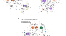 We modelled three different types of impact: regional production failures are modelled by reducing the projected world production for 2020/21 but keeping consumption fixed to the projected value; export restrictions are modelled by reducing world market supply and demand by the domestic consumption of the countries issuing the export restrictions for one time step and transferring the corresponding amount of grain to the consumer site storage; and stock-up attempts are modelled by increasing the consumer target storage level. Price changes are given with respect to the baseline price. Details on how the scenarios were derived on the basis of USDA data from the last 20 years are provided in the Supplementary Information.