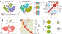 Raw sequencing reads were aligned to the RefSeq human transcriptome database using Bowtie v.0.12.7 (ref. 67). Gene expression was quantified using RSEM v.1.2.19 as transcripts per million (TPM)68. Downstream processing was performed using R v.4.2.0 as described previously unless otherwise stated9. Briefly, expression levels were calculated using log-transformation of the TPM (TPMi,j) for each gene (i) and cell (j): Ei,j = log2(TPMi,j/10 + 1). To filter out low-quality cells in fresh samples, cells with fewer than 2,000 detected genes or more than 15% mitochondrial reads were removed. For the frozen samples, a filtering threshold of fewer than 1,500 genes was used. In total, 3,406 high-quality cells (2,520 derived from fresh and 886 from frozen tissue samples) were obtained (Extended Data Fig. 1c). For these cells, we computed the average expression of each gene as Eai = log2(average(TPMi,1…n) + 1). For the downstream analysis, we only considered expressed genes with an average expression greater than four, obtaining 7,795 and 10,809 genes for fresh and frozen tissues, respectively. We defined the relative expression by centering the expression levels using Eri,j = Ei,j-average[Ei,1…n] for cells and genes.