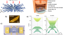 It is well established that under the application of hydrostatic pressure, tellurium’s band gap narrows12, and the double maximum turns continuously into a single maximum between 15 and 20 kbar13. Recent density functional theory (DFT) calculations suggest transitions to topologically interesting phases below 30 kbar14,15. However, the only previous experimental study in the respective pressure range is at odds with a gap closing at a pressure below the crystal phase transition at 40 kbar16. On the other hand, a recent quantum oscillations study has been interpreted as being more consistent with these calculations17.