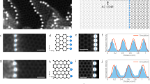 The nc-AFM experiments were conducted in another ultra-high vacuum chamber under 4 × 10−9 Pa at a sample temperature of 5 K. Samples [17- and 13-AGNRs grown on Au(111)/mica substrates] mounted in the chamber were degassed at 200 °C for 4 h, then annealed at 400 °C for 20 min for the 17-AGNRs and at 420 °C for 30 min for the 13-AGNRs to remove impurities on the surface. For frequency modulation AFM, a tuning fork with an etched W tip was used as a force sensor (resonance frequency of 21.3 kHz, spring constant of 1800 N m−1, quality factor of 1–5 × 104). To obtain high-resolution AFM images, a CO molecule coadsorbed on the surfaces at 6 K was picked up to attach to the tip apex36. Frequency shift was measured in the constant-height mode. For the AFM image of the 17-AGNRs (13-AGNRs), the tip height was 0.07 nm higher (0.03 nm lower) than the setpoint determined from STM at Vs = 30 mV and It = 20 pA over the bare Au surface. All scanning images were edited using SPIP software (Image Metrology, Denmark).