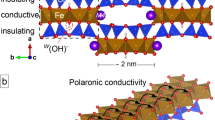 It is worth noting that an increase in conductivity has been observed above the temperature of dehydration of amphiboles16, i.e., after the injection of e− and H+ from the crystal bulk. The irreversible formation of Fe3+ certainly changes the whole electron band structure and the energy gap slightly shrinks14. Therefore, in this case the number of thermally activated conduction electrons in total should be larger than when the Fe2+–Fe3+ exchange is dynamic (reversible), but the mechanism beyond conductivity, namely coupled electron–phonon excitations is the same.