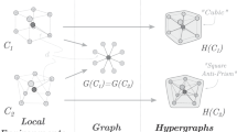 This section demonstrates how GNN learns structural information during each step of forward propagation. Figure 8 uses different colors to represent different nodes’ information, and we can note that each node gathers the information of its neighbors after one step of node updating (from layer t to later t+1). Equation (19) and the right part of Fig. 8 give a simple demo of details in each step. Equation (20) shows the simplest output function where \(P\) is the target. The output function usually contains several pooling layers which compress all nodes and edges into a single vector and a final full connected layer to transform the vector to a real number \(P\). The graph \(G\) is defined by Eq. (21), where \(v,\,u\,{{{{{\rm{and}}}}}}\,A\) denote the node, the edge, and the adjacency matrix, respectively. It is clear that the nodes with different positions in this topological graph can gather different information from each other. Thus, each node in the tth layer encodes the t-order topological information around itself. The nodes can also encode the geometric information in a similar way just by adding the geometric information into the edge representation \(u\).