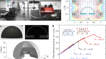To directly compare our numerical and experimental results while reducing computational times, we have performed simulations for N = 30 shells. However, our simulation can still robustly simulate significantly larger systems, albeit at a high computational expense: systems composed of N ~ 103 shells for instance require, on a standard PC, about 9 days of computation per compression-decompression cycle, mainly owing to the very accurate resolution of frictional contact constraints required to prevent shell-shell penetrations and crossings. Obtaining reliable statistics for \(({\Delta }_{\max },\eta )\), therefore, requires much more computational power for large systems, and we leave the study of the thermodynamic limit (N ≫ 1) as future work (c.f. section ‘Statistics of \({\Delta }_{\max }\) and η’).