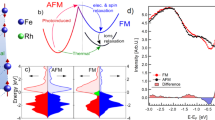 Lastly, we examined the spectral intensity of the IR spectrum, reflecting the density of states of the electronic structure. Figure 5c illustrates the real part of the optical conductivity spectra \({\sigma }_{1}(\omega )\) of FeRh, revealing a notable enhancement in spectral intensity at high temperatures (FM phase) and suppression at low temperatures (AFM phase). This observation suggests a higher (lower) density of states near the Fermi level in the FM (AFM) state, providing further evidence of band structure reconstruction during the phase transition of FeRh.