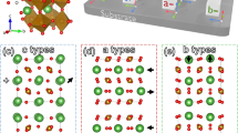 First-principles calculations are performed using the Vienna ab initio simulation package (VASP)68. Projected augmented wave method is used with a cut-off energy of 600 eV; the energy functional includes generalized gradient approximation with an added Hubbard interaction (GGA + U), with on-site Coulomb repulsion of U = 4.3 eV for the Fe 3d states, similarly with existing literature11,69,70,71,72. A Γ-centered Monkhorst-Pack grid of 7 × 7 × 5 k-points is used for self-consistent calculations. Atomic coordinates are relaxed within a force convergence threshold of 1 meV/Å. To simulate the effect of strain on bulk LFO, we simultaneously and symmetrically changed the in-plane lattice parameters ([100]o and [010]o, of the Pbnm cell) over an interval of ±2% average strain. This configuration is slightly different from the geometries in our experiments, but is both qualitative and representative for extending the analysis to our various geometries. Furthermore, the substrate symmetry does not play the major role in determining the AF-axis orientation. For each fixed set of in-plane lattice parameters, the OOP lattice parameter and all the atomic positions were allowed to relax to their minimum energy configuration. For each relaxed structure, we carried out non-collinear spin calculations including SOC to analyze the magnetization. To determine the preferred magnetization direction, we used a VASP feature that fixes the magnetization direction along a specified axis while allowing the magnetic moments to relax self-consistently to minimize the electronic energy. The lowest antiferromagnetic LFO energy state corresponds to the most stable spin alignment.