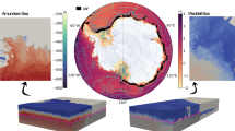To describe water mass distribution, we defined hydrographic sections (Fig. 1b, c; described in the “Methods” section). Subsurface water with warm temperature (>1 °C), high salinity (>34.7), and low dissolved oxygen (DO) content (<210 μmol kg−1), termed as mCDW, is observed at depths ~300–500 dbar along the upper continental slope off TIS (113–121°E, zonal Section 1, Fig. 3). The mCDW spatial distribution is worthy of special mention considering remarkably warm cores (1.2–1.4 °C) at 350–400 dbar that are spatially scattered rather than continuous, wherein the mCDW is notably thick in the vertical extent (Stations [hereafter, Sta.] 502, 507, 512, and 522, Fig. 3a). The mCDW cores observed in February 2019 were at much higher temperatures than the warmer intrusion of mCDW previously observed from March to June on the upper slope (warmer than 0 °C, but mostly cooler than 1 °C)17. A positional correspondence between eddies and warm cores is defined by the that particularly warm waters are consistently observed around the eastern sides of the cyclonic Poinsett (Sta. 507) and West-Sabrina (Sta. 522) Eddies (Figs. 2b, 3a). We further note that warm cores are also located on the western side of the Poinsett (Sta. 502) and West-Sabrina (Sta. 512) Eddies (Figs. 2b, 3a). It is worth highlighting that similar correspondence is determined for the East-Sabrina Eddy, demonstrated by the expendable conductivity–temperature–depth (XCTD) observations across the southern part of this eddy (Supplementary Fig. 1). The in-situ observational pieces of evidence for Poinsett, West-Sabrina, and East-Sabrina Eddies (this study), as well as Vincennes Eddy18, firmly represent a robust correspondence relationship between the locations of eddies and warm cores. Furthermore, semi-permanent features of the Poinsett and West-Sabrina Eddies and corresponding warm water transport at the eddy’s eastern/western edges are confirmed based on the hydrographic observations from icebreaker Shirase in December 2019 (Supplementary Fig. 2) and February 2020 (Supplementary Fig. 3).