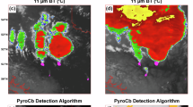 Since 2012, pyroCb detection and accounting has been carried out methodically via analyst-in-the-loop near-real-time satellite-image interpretation as described above52. The full results have yet to be published in peer-review literature, but the detection method and inventory of North American pyroCb activity is available for the 2002 and 2013 fire seasons50,52. The shortwave and window IR signals of active deep pyroconvection have been codified in an automated pyroCb-detection algorithm52, which is used to monitor ongoing pyroCb activity in North America, northern Asia (eastern Siberia), Australia, and additional regions where pyroCbs have been observed (https://www.nrlmry.navy.mil/pyrocb-bin/pyrocb.cgi).