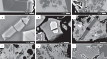 Electron probe microanalysis (EPMA) was conducted using the JEOL JXA-8530F FEG electron microprobe at the Photon Science Institute, University of Manchester, to determine major element chemistry of seven FL samples. BSE images of sample textures were also acquired using the same instrument. BSE images were used to inspect MI prior to EPMA analysis and visibly crystallised inclusions were not analysed. We used a dual condition set-up to measure both crystals and glasses whilst minimising potential devolatilisation of the glass. The operating conditions for analysis of crystals were: an acceleration voltage of 15 kV, a beam current of 7–10 nA and beam diameter of 1–5 µm. For the analysis of glasses, the beam current was reduced to 2–7 nA and the beam diameter increased to 5–15 µm. Peak count times for all elements were 20–40 s, except Mn, where peak count times were 20–50 s (Supplementary Table 5). Na and K were measured first to minimise loss via devolatilisation. Calibration standards were orthoclase (K, Si and Al), wollastonite (Ca and Si), fayalite (Fe), periclase (Mg), jadeite (Na), tephroite (Mn), rutile (Ti), apatite (P) Cr2O3 (Cr), NiO (Ni) and pyrite and anhydrite (S). The basaltic glass standard A9965 was used as a secondary standard. Data processing was accomplished using the Probe for EPMA software (v.12.9.5). Analytical precision (1σ as calculated by Probe for EPMA) ranges between <1 and 3% for major elements with concentrations greater than 1%. For major element concentrations <1% analytical precision ranges between 12 and 14%. For element concentrations <0.1%, analytical precision ranges between 41 and 52%. Whole-rock composition of FL samples was determined by measuring four glass chips using EPMA. The reported whole-rock compositions are an average of a number of points (n = 30–86) measured from each glass chip. Full compositional data are provided in Supplementary Data 1.